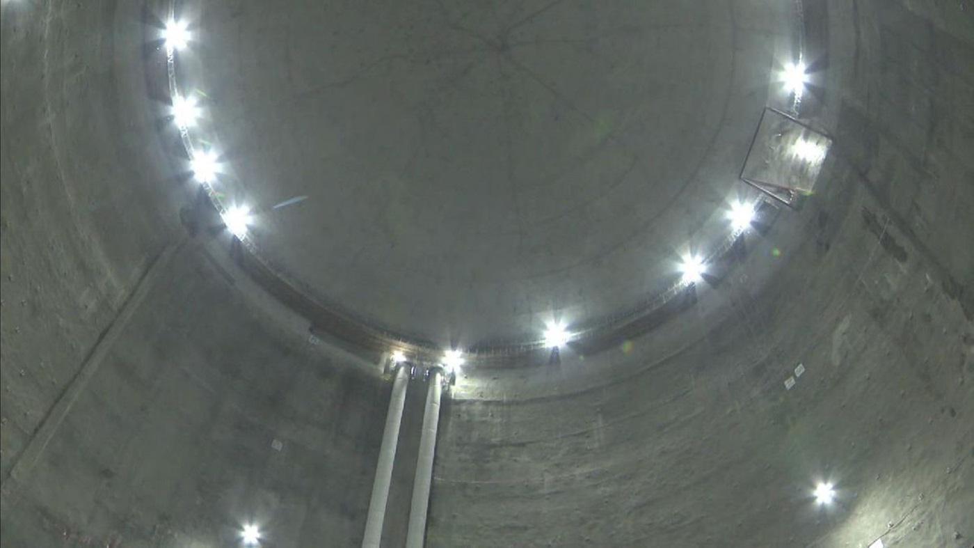 東京大学宇宙線研究所は28日、岐阜県飛驒市神岡町に建設する次世代観測装置「ハイパーカミオカンデ」の巨大空洞を公開した。地下にある人工空洞として世界最大級という。 掘削工事は7月にも完了し、これから素粒子の一種「ニュートリノ」を計測するための水槽や超高感度光センサーなどを設置する。28年にも観測を始める。 https://www.nikkei.com/article/DGXZQOSG281180Y5A620C2000000/ ハイパーカミオカンデは素粒子の一つニュートリノを調べる施設で神岡鉱山の地下約600メートルに建設している。初代にあたる「カミオカンデ」が1983年に建設され、 96年から2代目の「スーパーカミオカンデ」が稼働している。ハイパーカミオカンデは3代目にあたり、20年から建設が始まっている。 この日公開した空洞はニュートリノを捉える検出器を設置する場所で、高さ94メートル、直径69メートル、神岡鉱山の地下約600メートルに位置する。 7月に掘削工事が完了した。ニュートリノ検出に必要な水槽を設置し、26年8月から超高感度光センサーの設置を始める。検出器の体積はスーパーカミオカンデの約8倍だ。 当初は27年の観測開始を目指していたが、坑道内の安全対策や資材の高騰による水槽などの設計の見直しで1年遅れる。 宇宙が誕生した瞬間は物質と反対の性質をもった反物質が同じ数存在していたとされる。現在の宇宙は物質に満ちており、なぜ反物質が消えたのか理由は分かっていない。 ハイパーカミオカンデは人工的に生成したニュートリノと反ニュートリノの振る舞いの違いを調べて、物質の起源の謎に迫る。 これまでのカミオカンデは、ニュートリノの発見や性質の解明に貢献し、2度のノーベル物理学賞の受賞につながった。陽子が壊れる「陽子崩壊」の検出なども目指している。 研究プロジェクトの共同代表者である東京大の塩沢真人教授は「大空洞が実現でき、大きな山場を越えられた。工事を進めて素粒子の理解が変わるような 実験結果を出していきたい」と意気込む。